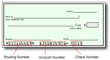 In Canada and the United States, your account information would be displayed as shown on the sample checks below: